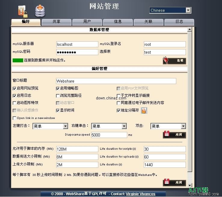 WebShare是一个采用Ajax+PHP技术开发的webFTP资源管理器。可以利用它来查看,复制,修改,新增和共享Web文档。