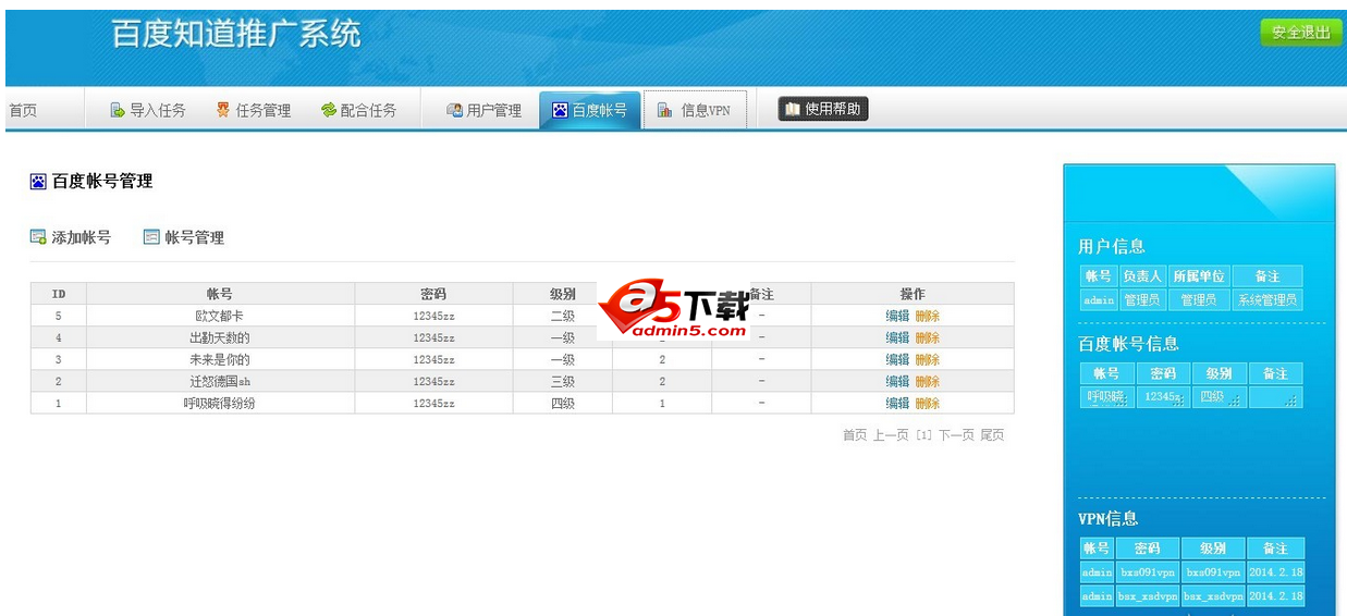 SEO优化外链:百度知道推广系统. 用于对外链进行量化统计分析的系统. 特别是针对百度知道系统. 多用户管理的系统.一个管理员可以看到所有外链人员的工作情况. 还可以及时提现外链人员,注意发布情况.