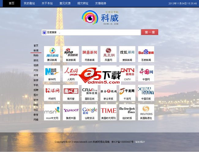 科威可视化导航的含义是一个集合较多网址,并按照一定条件进行分类的一种网址站。可视化网址导航方便网友们快速找到自己需要的网站,而不用去记住各类网站的网址,就可以直接进到所需的网站。作为网址导航一个分支的可视化网址导航是一种以图片和文字相互交替的新一代网址导航,是未来网址导航的一个趋势,以其简单明了、直观而得到用户的广泛欢迎。