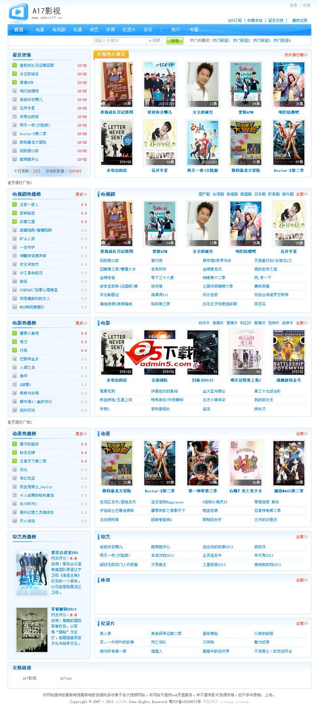 A17CMS是基于光线CMS1.5二次开发的视频类网站源码。