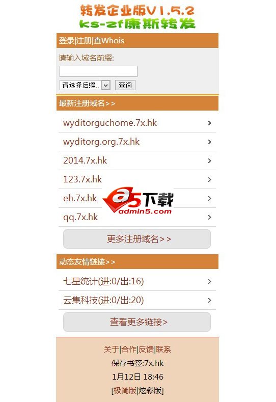 ks-康斯WAP域名转发系统安装说明: 1.开通独立IP空间 2.打开Conn.asp配置主域名,配置完上传到空间根目录 3.解析域名A记录*到独立IP上 4.访问