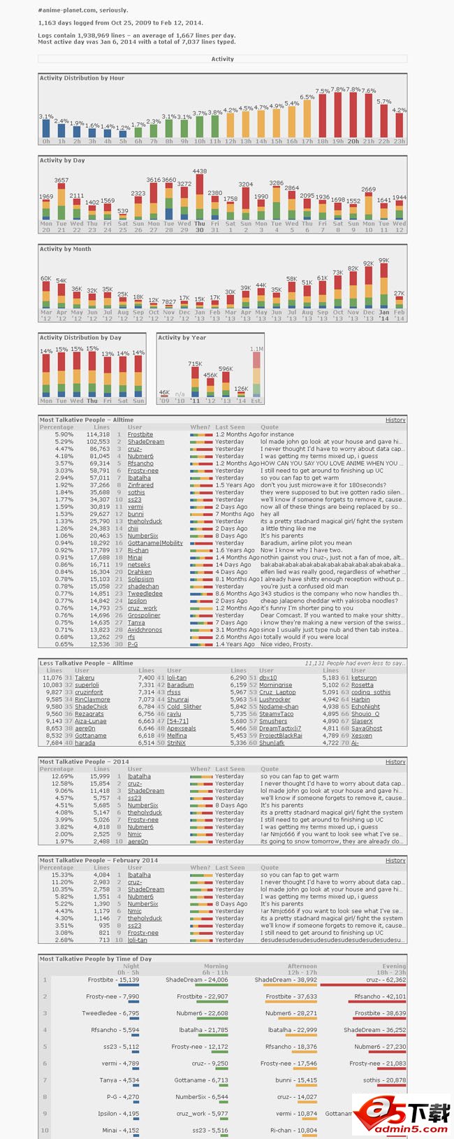 SuperSeriousStats是一个IRC日志网页统计分析程序,使用PHP开发。统计分析数据存放于MySQL或SQLite数据库中。适合大批量的IRC和大型的记录档案。