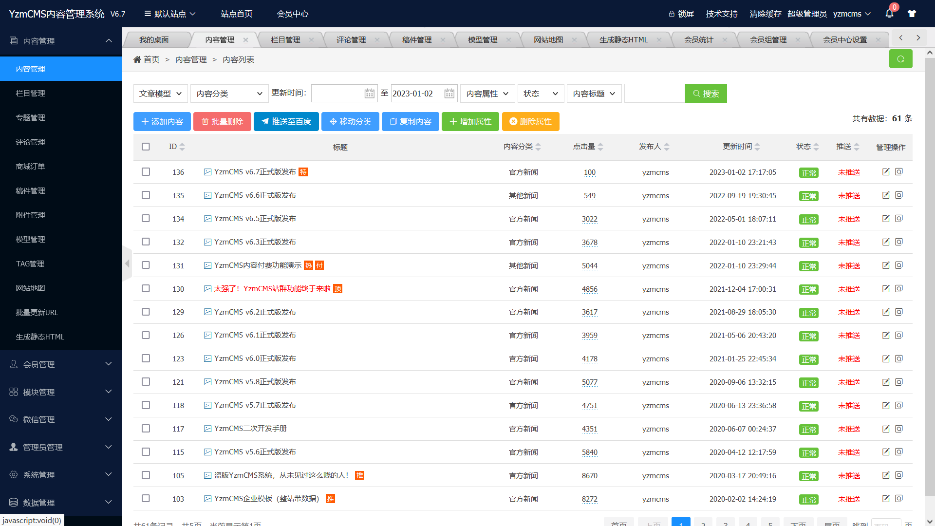 YzmCMS轻量级开源CMS v6.8 更新日志