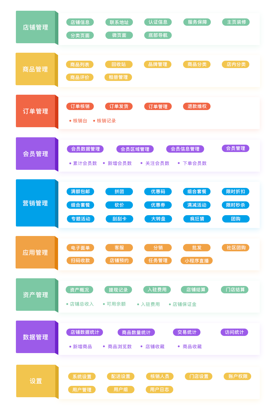 7、内置强大灵活的权限管理体系,有利于专人专项运营;