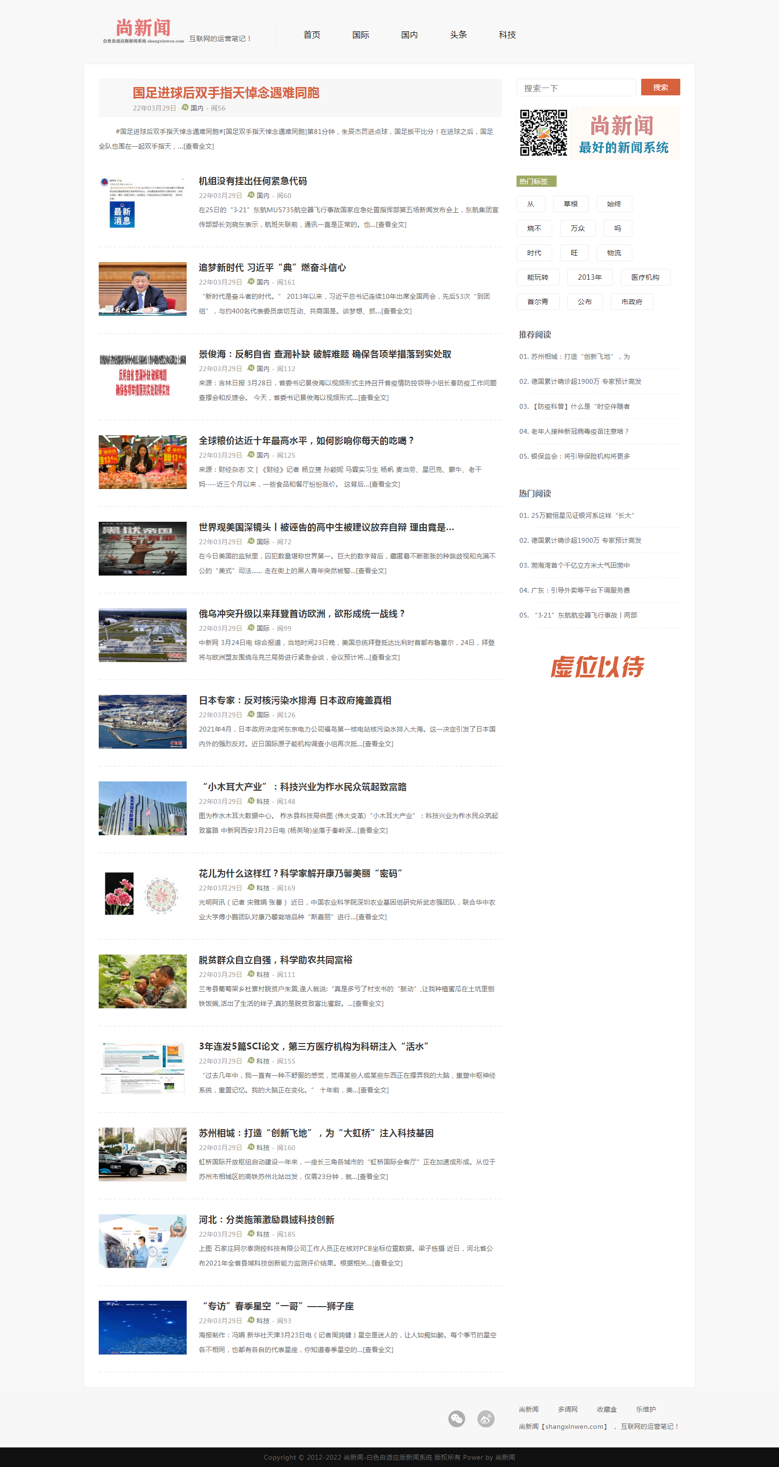 尚新闻-白色自适应新闻系统(带接口-全自动采集发布)