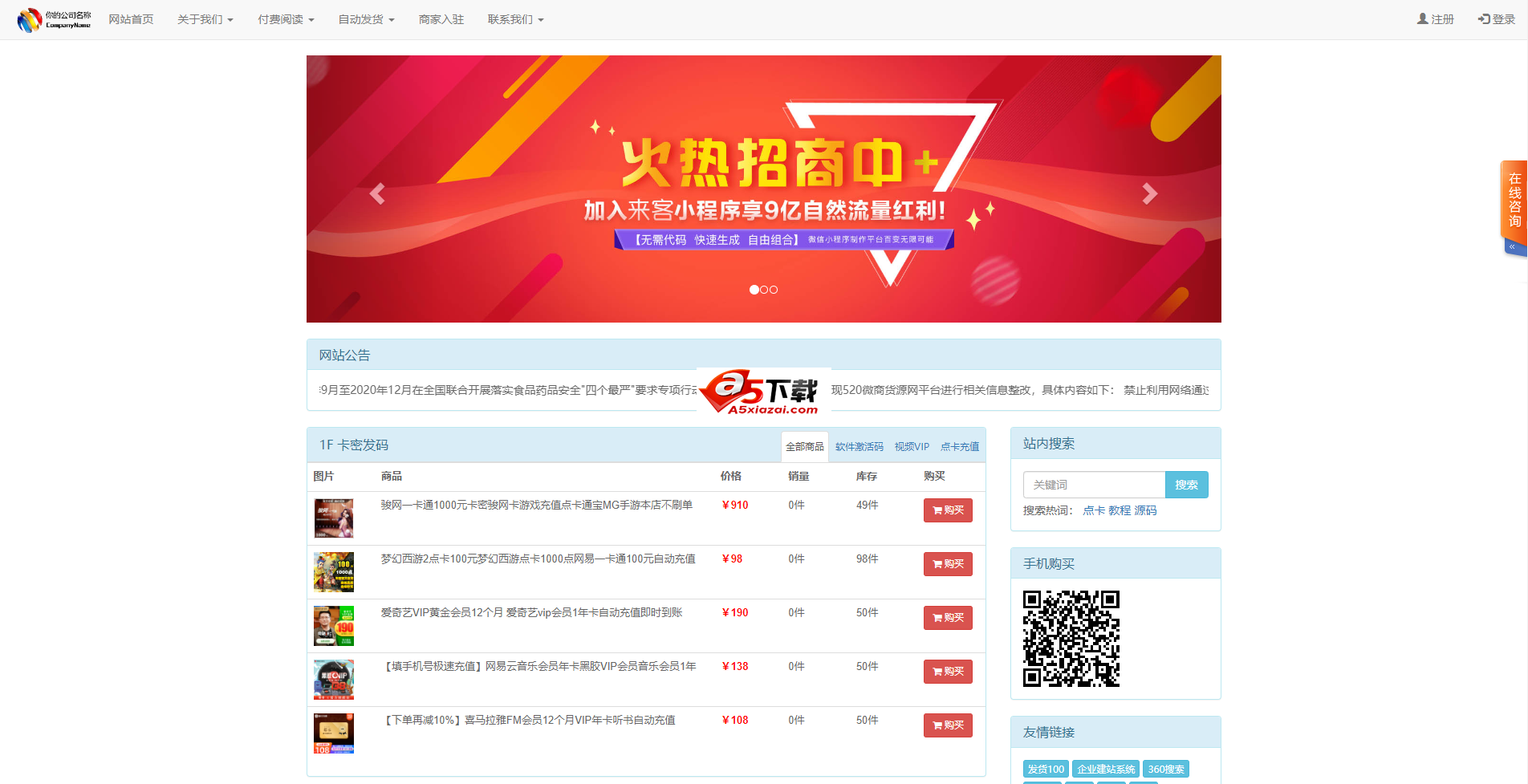 发货100简约发卡系统(含小程序)是一套功能强大的在线视频课程教育系统/文章付费阅读系统,无需人工值守,客户在线购买即可自动完成交易。支持缺货提醒/快捷登录/回收站/免登录购买等多种功能。