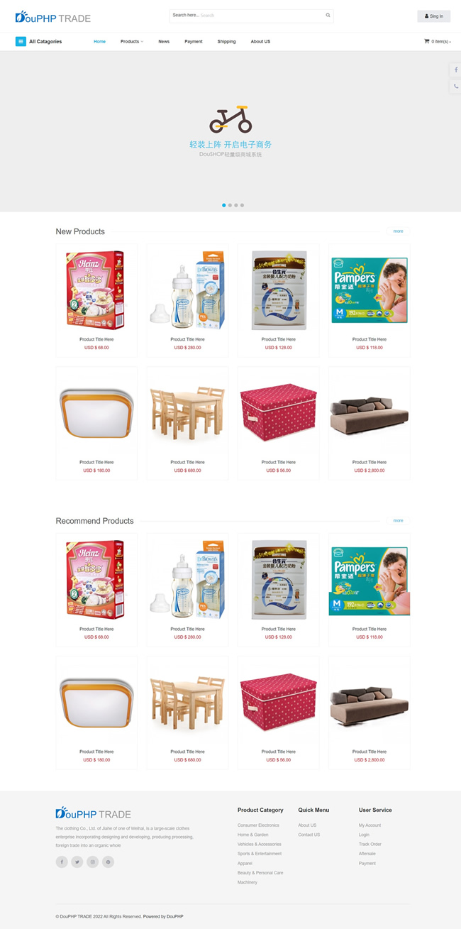 DouPHP是一款轻量级企业网站管理系统,基于PHP+MYSQL架构的,包含“手机版”、“公众号管理模块”、“小程序”,可以使用它快速搭建一个企业网站。