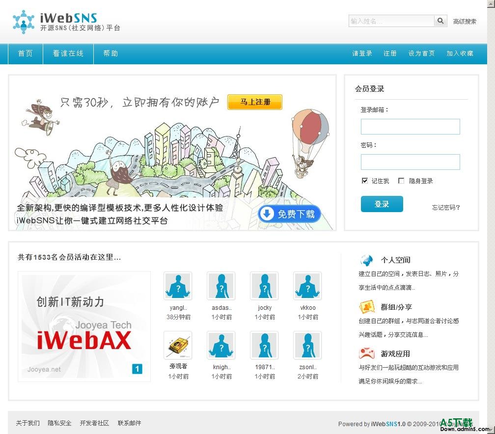 数开社交营销型网站系统iWebSNS,是基于全营销技术架构体系的新一代SNS软件,以全新的LAMP营销CMS开发框架构建。新架构整个开发过程以营销目标为驱动,并保持了良好的代码品质。SNS商业版版本从6.0开始,开源版继续1.x-3.x累加版本号。本次发布的iWebSNS1.3开源版,尝试引入了部分商业版面向SEO的营销型技术架构,并对1.1版本的不足进行了升级。