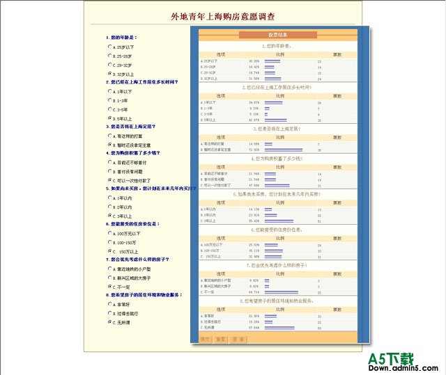直接上传到空间 不需要MYSQL支持 不用后台 数据保存在DATA文件夹 t.txt(title) 每条标题 a.txt(ask) 每条选项 r.txt(resault)投票结果 回车和"|"分隔数据.