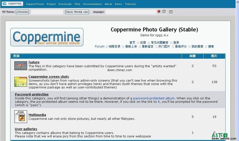 优秀的相册程序,具有上传、评论、我的收藏、搜索、投票,图片使用GD可自动缩列,多用户,个人图集,含简、繁中文文件,内含30多种语言包(包括简体和繁体),可以很好的和V B B、IPB、PHPBB、YABB整合使。
