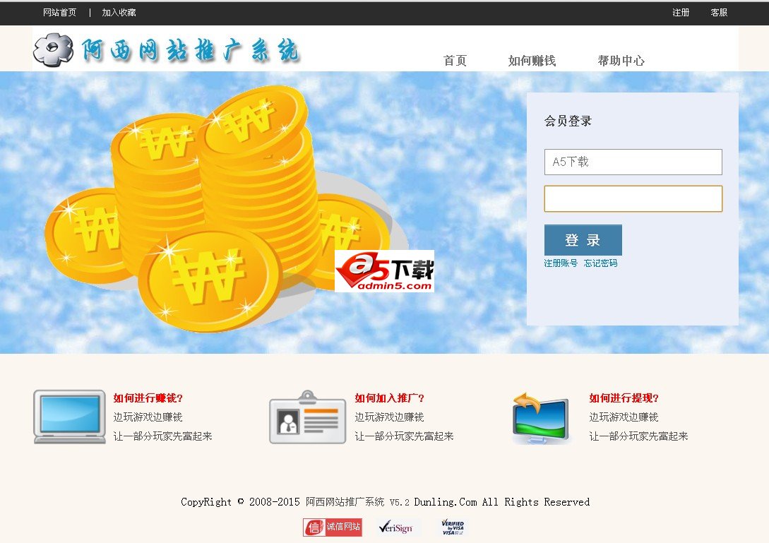 阿西网站推广系统前台首页界面图: