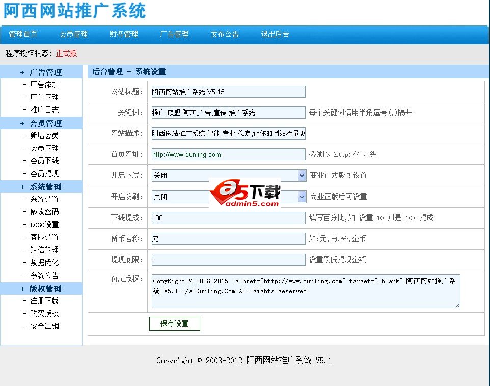 阿西网站推广系统 V5.25 后台管理新增功能: