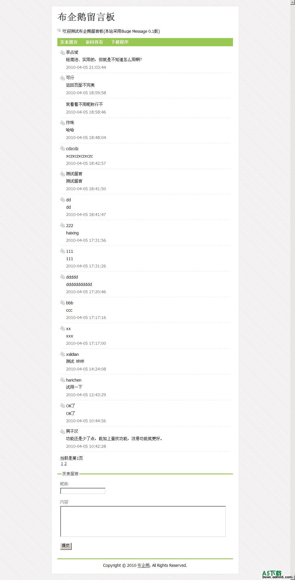安装环境:php、mysql 功能特点: 简洁、快速。最大限度利用缓存,减少服务器压力,特别适合用在访问量比较大的留言。 使用说明: 1、初次使用时候打开install.php安装; 2、安装完成后,为确保安全,最好删除install.php; 3、管理后台为admin.php。