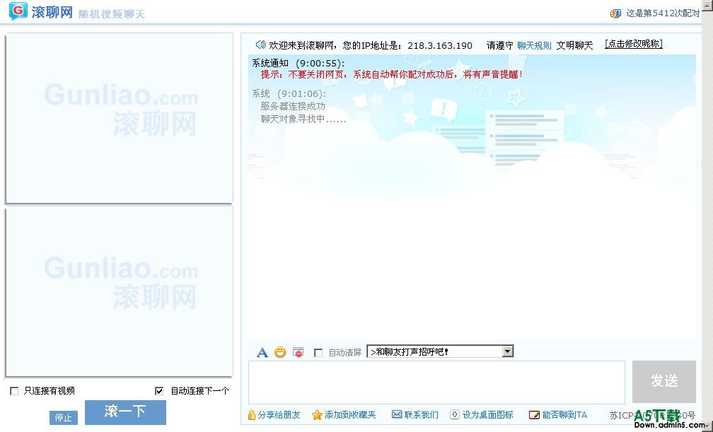 国外聊天轮盘的国内版,提供随机视频聊天服务,运用red5和java技术,采用p2p的数据传输方式,最新版2.0 加入快捷键功能 风格更美观,可以作为网站或论坛的聊天板块。