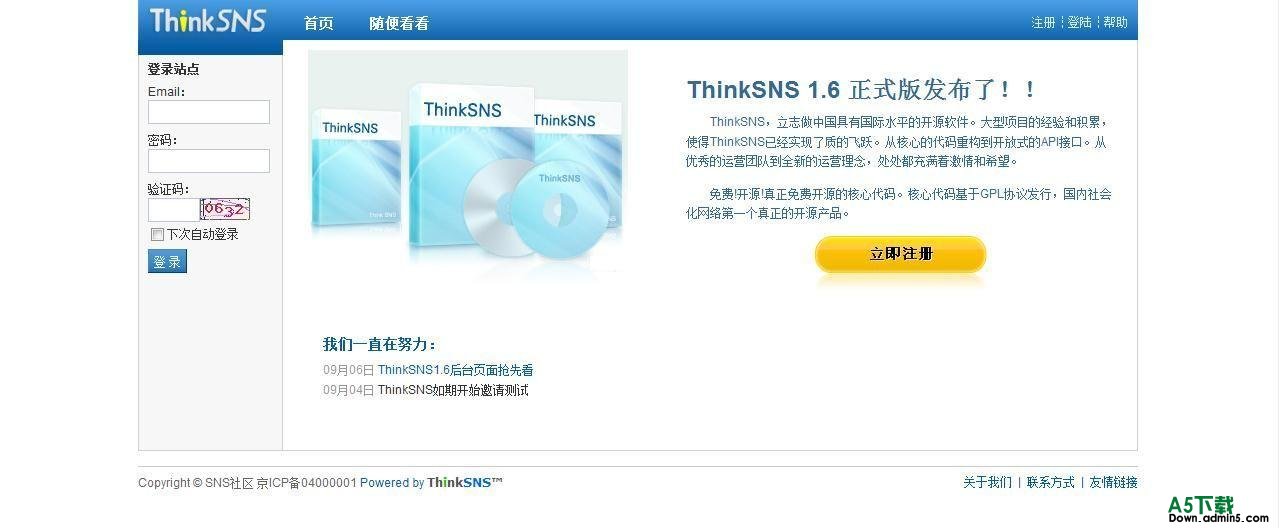 ThinkSNS基于许多优秀的开源软件开发,提供全方位的社交网络解决方案ThinkSNS源于办公圈项目,WEB端基于国内技术领先的ThinkPHP框架开发,另外还有IM客户端软件。