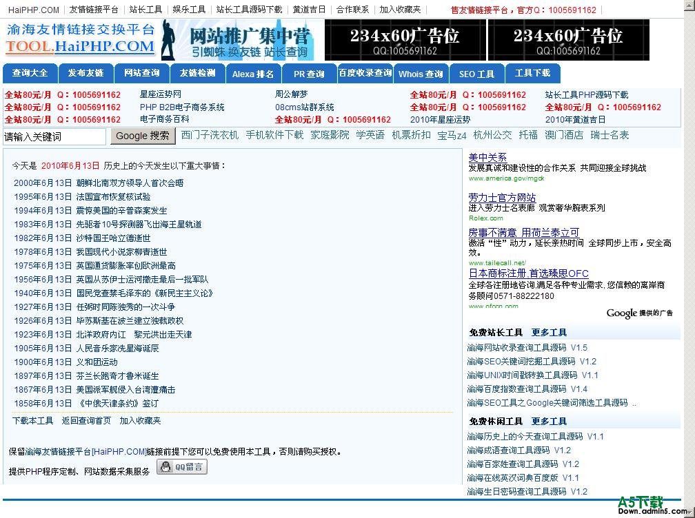 欢迎使用渝海历史上的今天查询工具,本工具运行环境需求:PHP+MYSQL。