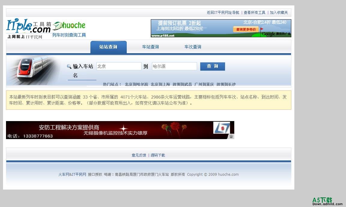 2. 上传完成,运行(http://您的网址/tool/train/)即可使用列车时刻查询工具。