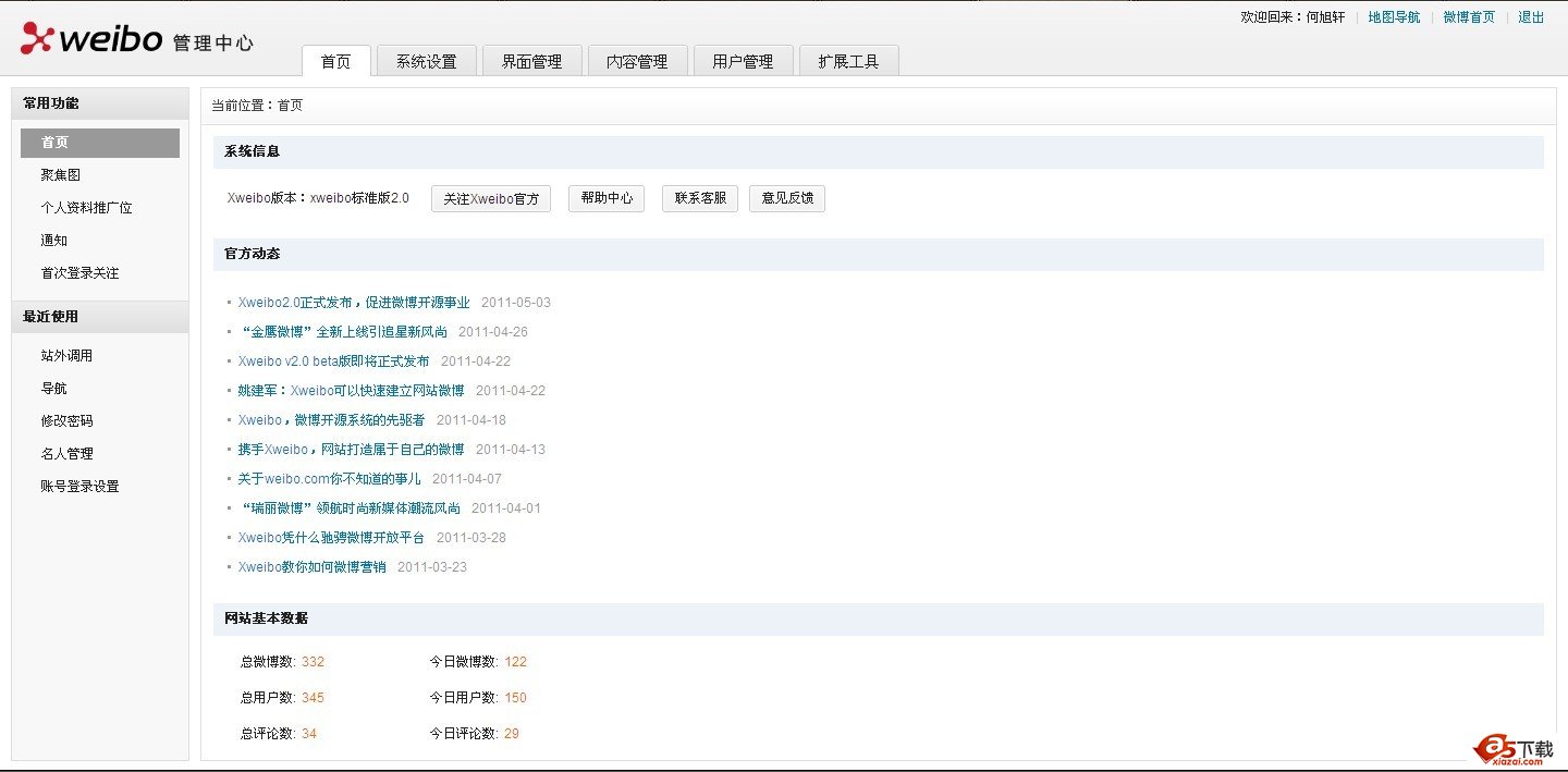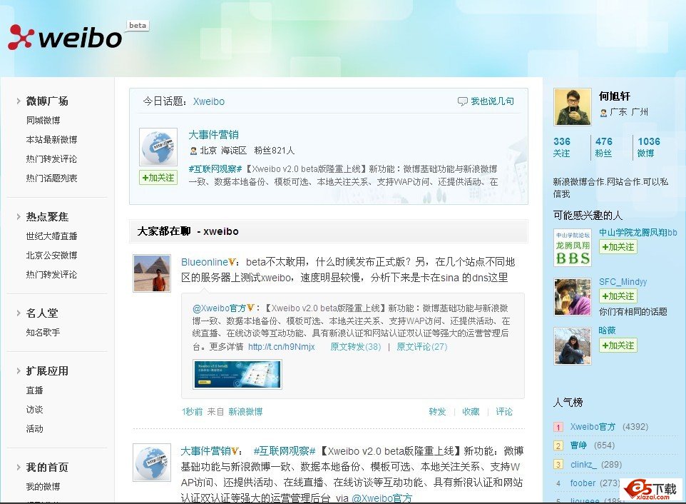 weibo具有新浪微博的核心功能,具备微博发布、浏览、转发、评论、收藏、话题、黑名单等核心功能以外,还满足更多运营需求:数据本地备份、设置网站粉丝/关注关系从零开始或继续用新浪微博的关注关系、多个互动模块(包括活动、现场直播、现场访谈)、信息审核后台、自定义短链接、个性域名、自由选择模板、自定义皮肤、站外调用功能(微博秀单元、用户列表单元、互动话题单元、一键关注单元、群组微博单元)等。