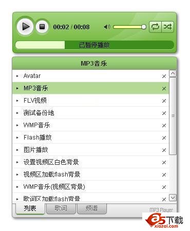 CMP是一款免费的在线Flash音乐播放器,致力于提供最佳在线音乐播放解决方案。支持的音频视频格式主要有MP3,FLV,MP4,并可以通过网页JS接口实现WMP(Windows Media Player)所支持的格式播放,如wma等。主要功能特色有列表式播放(自定义音乐专辑和列表),MP3可视化效果(声音频谱),同步歌词(默认支持lrc歌词以及kmc卡拉ok歌词),高清视频和在线直播(h264/rtmp),自定义皮肤,加载各种插件等等,CMP4支持API的调用,可让用户实现更多自定义功能。