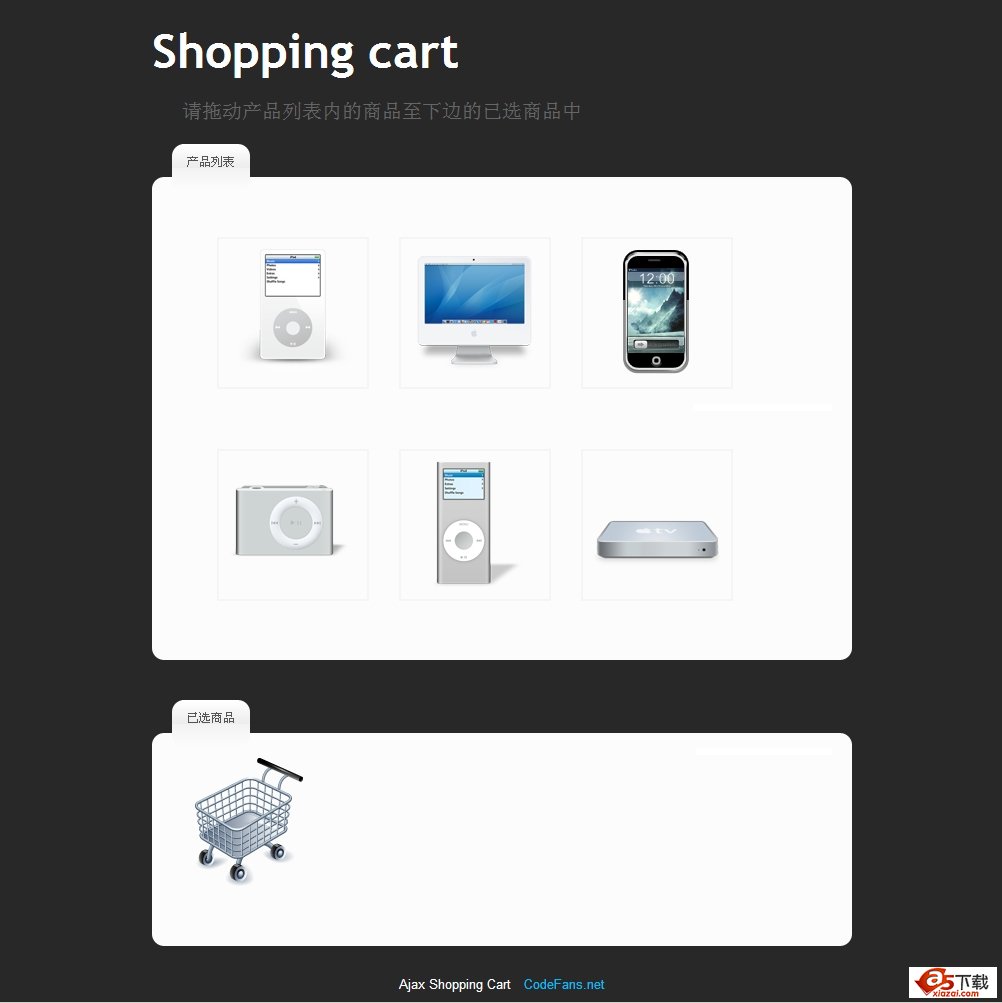 展示,用鼠标拖动商品到购物车中,即可选中商品,购物车程