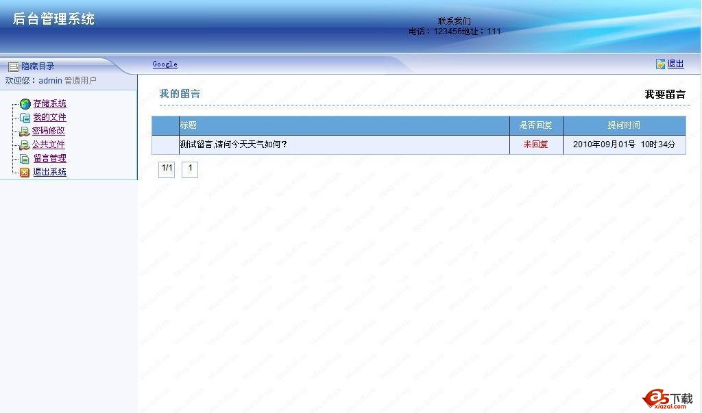 业务文件管理系统后台功能:存储系统,我的文件,密码修改,公共文件,留言管理 后台用户名admin密码356274002