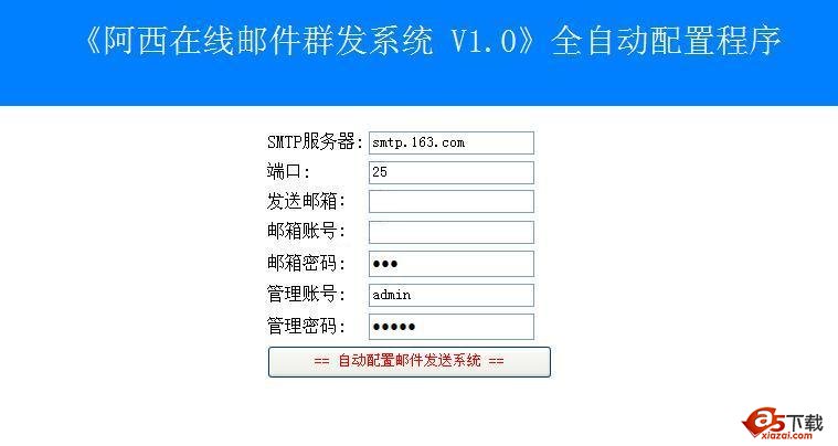 上传后,运行 install.php 根据提示输入相应的信息程序就会自动安装邮件群发系统配置文件。