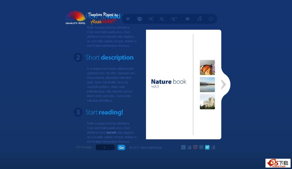 很不错的一款国外FLASH翻页电子杂志,功能上十分的强大,有FLV视频播放器功能,还有图像大小预览功能,主文件没有源码。需要自己破解。内页有FLA源文件可以使用FLASH软件自己编辑。由于体积太大删除掉了部分视频文件。使用FLASH+xml加载编辑页码,编辑完成可以上传到网络上作为网页欣赏。