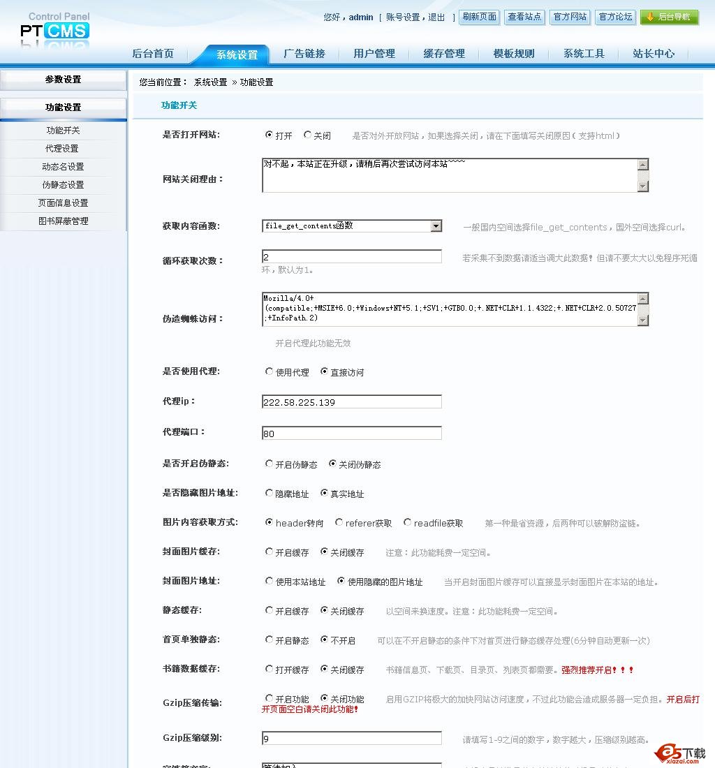 10、伪静态方面:前台全部伪静态,后台自由设置伪静态链接规则,后台可开启关闭伪静态,可以自由修改伪静态