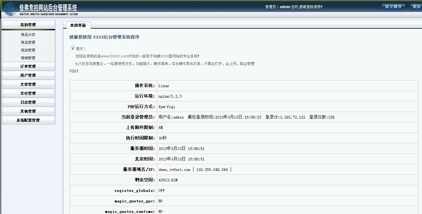 后台演示地址:http://demo.jvfnet.com/admin.php