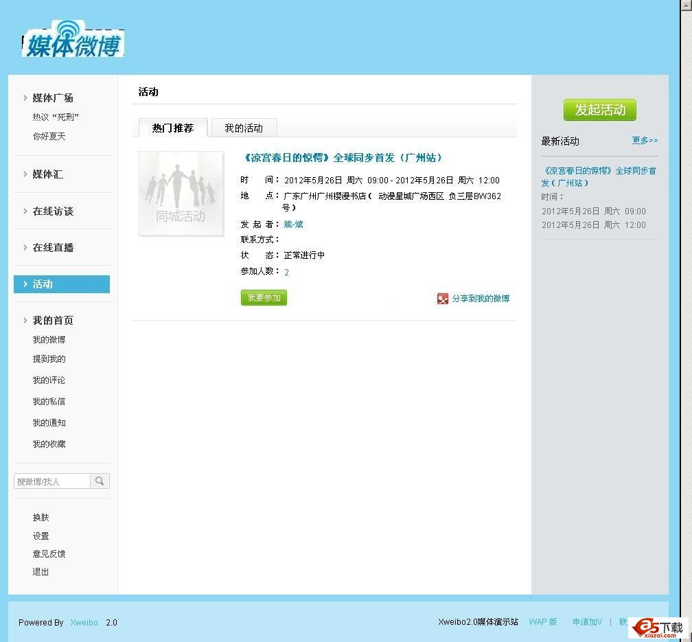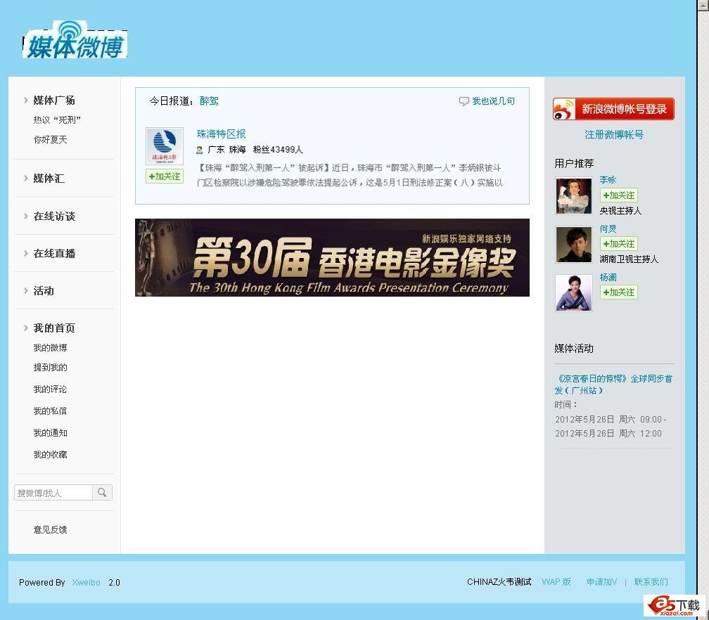 新浪Xweibo联合多家主流媒体共同推出媒体微博解决方案。该方案可以快速帮助媒体网站部署具有媒体特色的微博系统,媒体方拥有所属权、独立域名、独立管理运营。媒体微博解决方案从根本上降低了媒体网站建立和运营微博的成本,极大地满足了媒体行业对媒体微博平台的搭建需求。