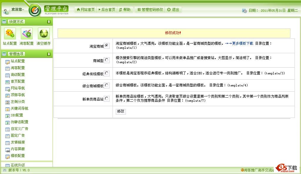 实现代码与界面的分离,支持模板切换。程序提供多个大方美观的模板提供下载,用户也可以定制自己喜欢的样式。