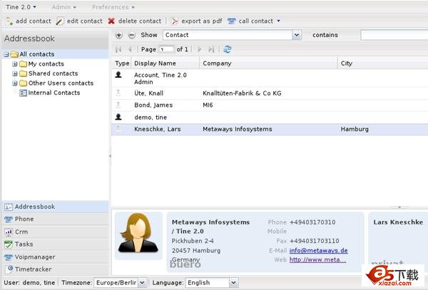 Tine 是一个基于Web的群件解决方案,侧重于实用性和正确性。为了实现这些目标,该项目采用的可用性专家和涵盖了大部分的代码单元测试。Tine 2.0包含支持联系人,任务,客户关系管理,网络电话集成, timetracker ,以及灵活的权限管理系统。