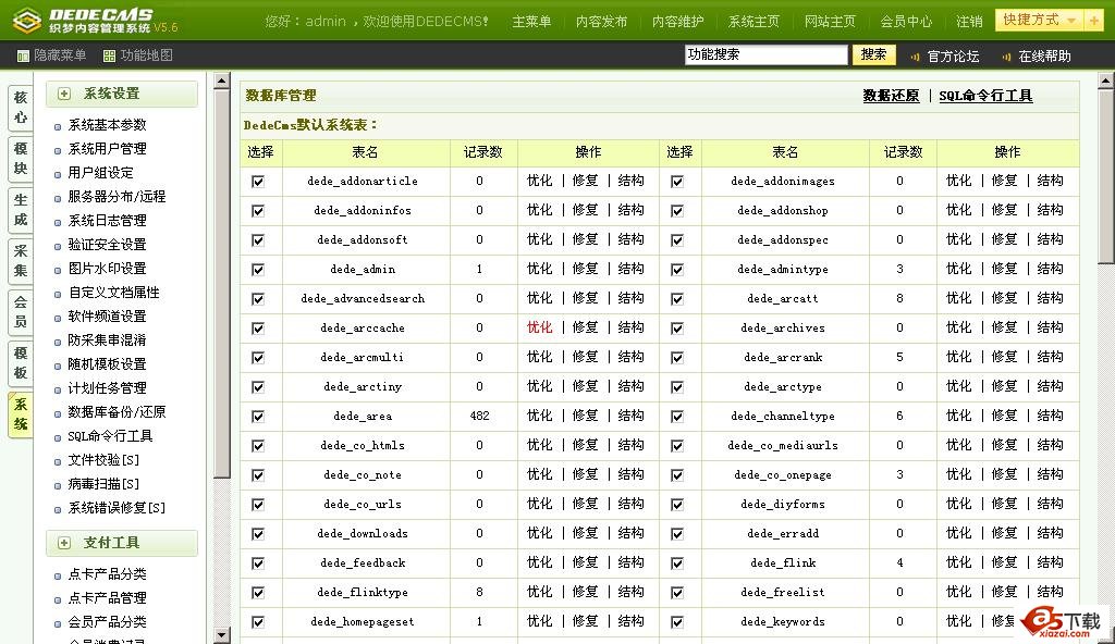 安装完成后进入后台进入系统 恢复数据库 OK了 之后添加你的内容就可以了 恢复数据后 后台密码账户是 admin admin