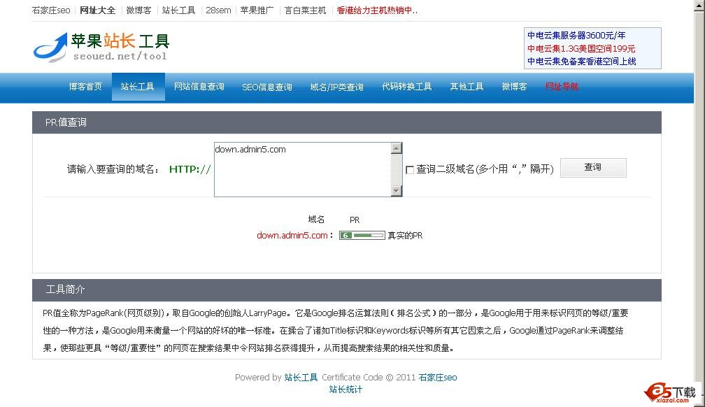 站长工具修改功能:1、PR查询由原来的单个查询改为批量查询,并支持二级域名查询;