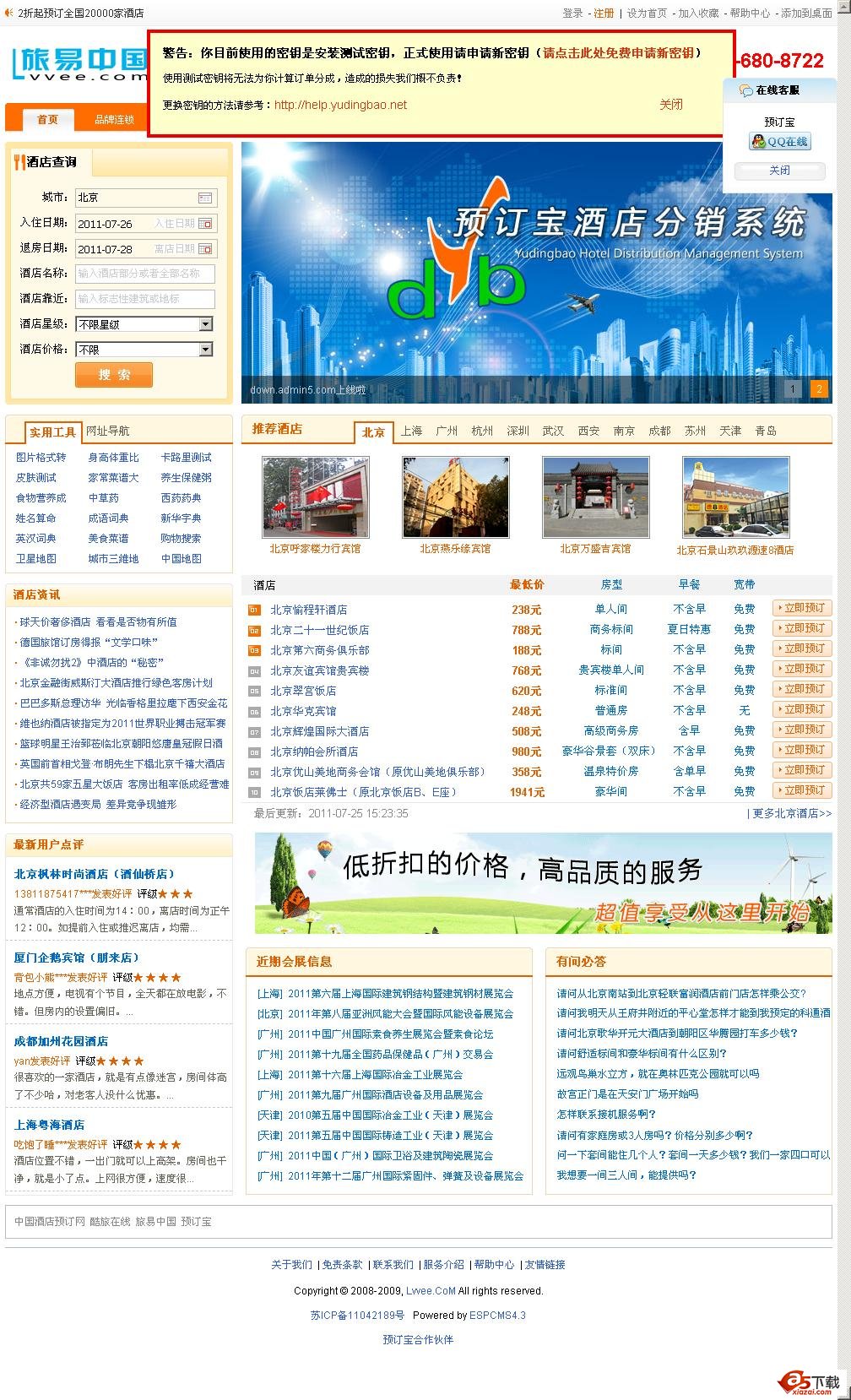预订宝酒店预订系统 2011-08-20更新内容: