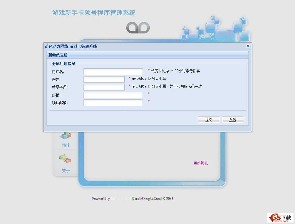 游戏新手卡领号程序管理系统是蓝色动力网络自主开发的一套用于游戏推广的领号程序,采用php+mysql,后台使用了ExtJs,让操作更简单,界面更漂亮! 该程序适合做个人博客,实现了伪静态功能,更利于seo。