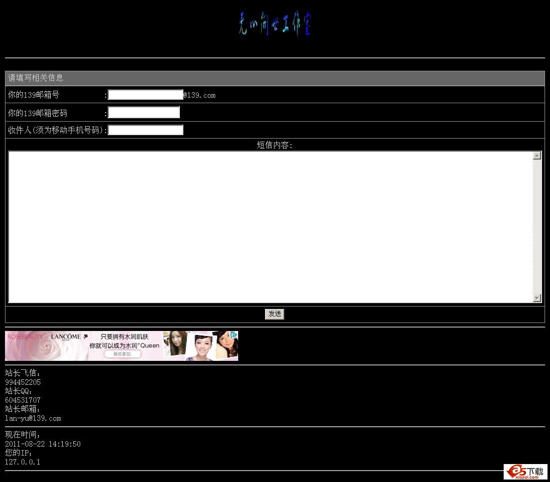 程序说明:你能使用此程序免费发送短信到移动手机用户,注:由于移动限制,每一个邮箱每天仅能发送50条短信