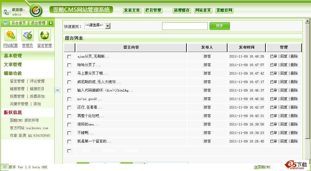 歪酷CMS v1.0 RC gbk build 20120101更新内容: