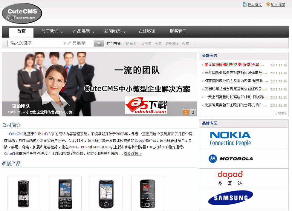 当前位置:下载COM绿色软件园 > php源码 > CMS文章 > CuteCMS企业网站|外贸网站管理系统v3.5