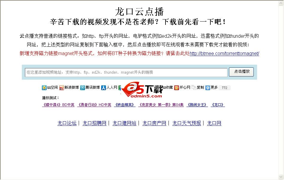 把上述类型的网址复制到输入框中然后点击播放即可在线观看本来需要下载完才能看的视频。