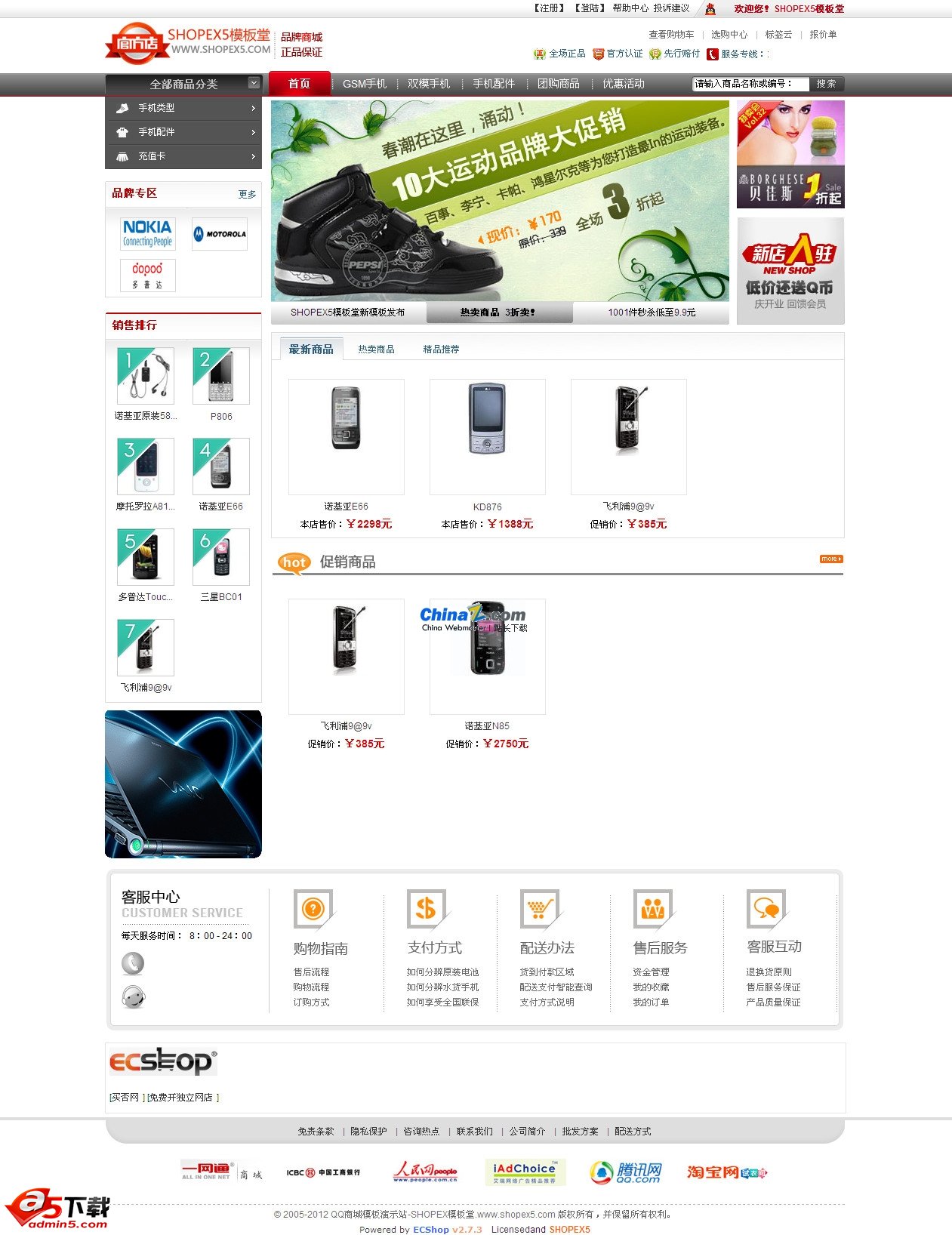 ECSHOP仿QQ官方商城整站源码,基于ECSHOP V2.7.3制作。整体采用黑色。费用漂亮。适合综合,包包,首饰类商城网站使用。