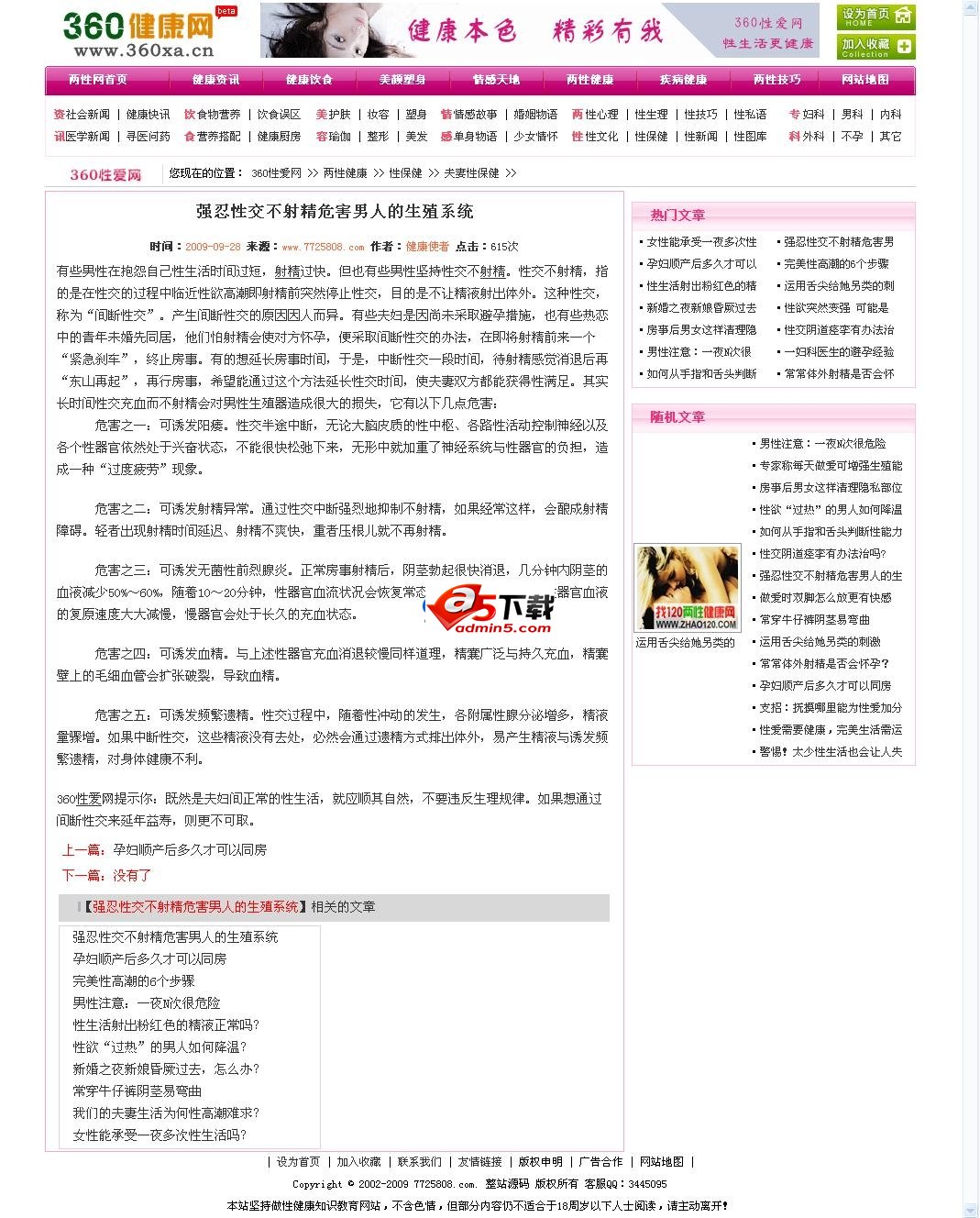 某健康知识网整站程序,采用DEDE全站生成HTML,带数据。 安装说明: 执行http://域名/install 安装程序 后台恢复数据。 后台地址为http://域名/dede 账号:admin 密码:www.7725808.com