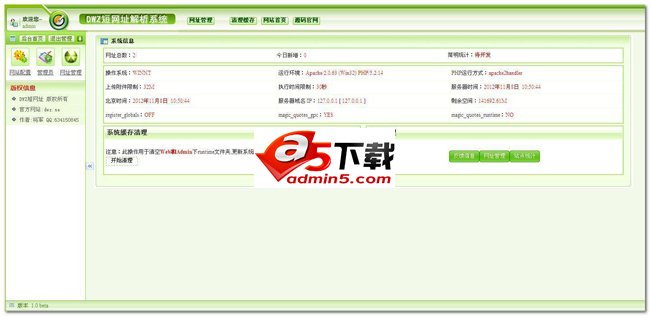 DWZ短网址是一款PHP语言下的开源解析软件 ,提供用户进行网址缩短、网址还原、网址加密等功能,并提供一套管理后台,方便管理员进行管理。