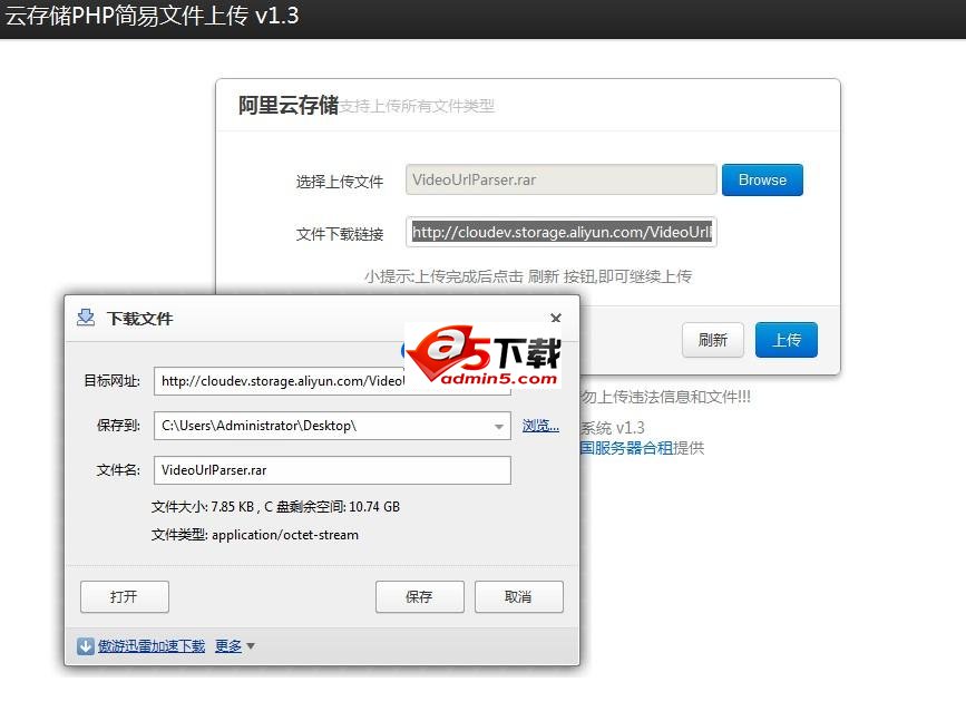 云存储PHP简易文件上传系统 v1.3 For 阿里云存储