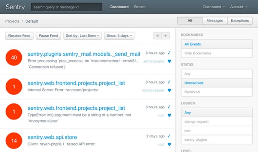 Sentry 可以帮助你将 Python 程序的所有 exception 自动记录下来,然后在一个好用的 UI 上呈现和搜索。处理 exception 是每个程序的必要部分,所以 Sentry 也几乎可以说是所有项目的必备组件。
