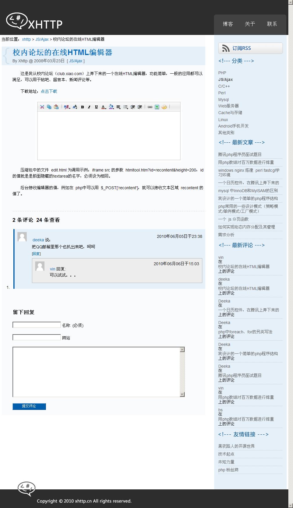 这是我从校内论坛(club.xiao.com)上弄下来的一个在线HTML编辑器,功能简单,一般的应用都可以满足,可以用于贴吧、留言本、新闻评论等。