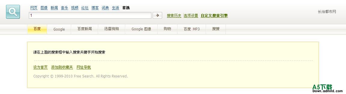 更新记录: 2010-10-25 更注重搜索习惯和实用性; 针对不显示搜索结果的页面进行整理; 删除中搜,变更为有道; 全面覆盖国内常用搜索引擎; 根据搜索引擎特点,加强类别结果; 音乐类增加“酷狗”; 取消论坛类别,变更为资料,包括文档、黄页。
