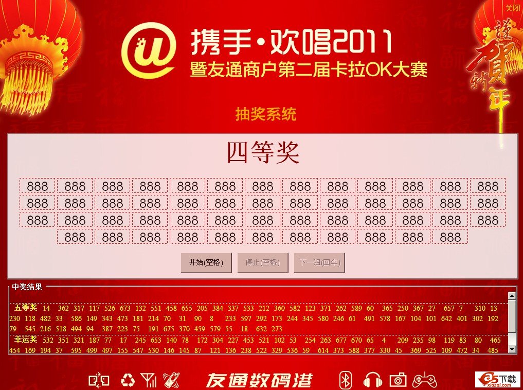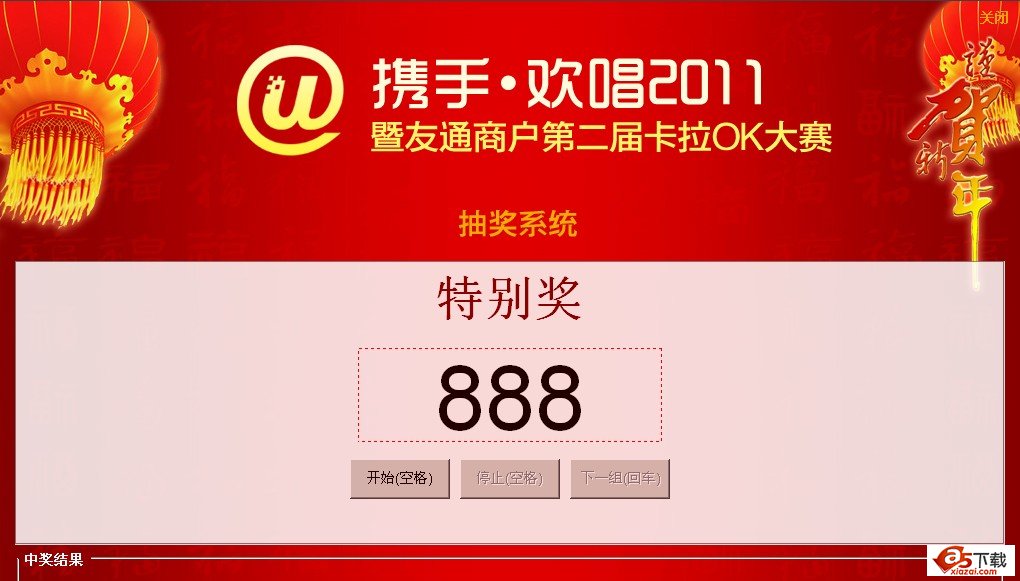 2、全屏幕显示1024X768像素,界面美观大方,适合于投影仪投射晚会晚宴豪华场所抽奖系统。