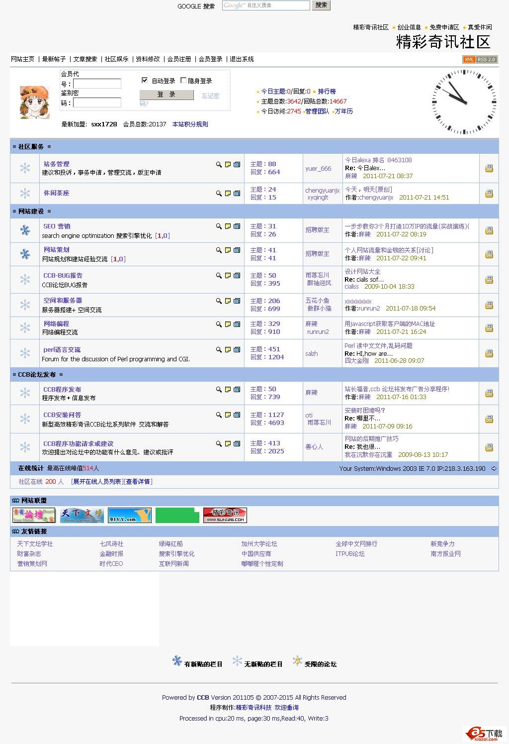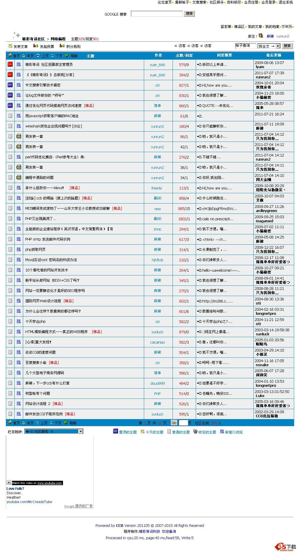 2011-6-20版对CCB论坛的程序结构和数据算法进行了大量的优化,目前已是国内现存的非常少见的很稳定成熟的文本系统.