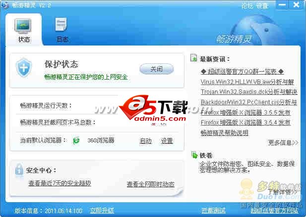 畅游精灵是超级巡警实验室推出的网页杀毒软件,产品在原畅游巡警的基础上进行二次开发,采用更为先进的脚本引擎,病毒引擎,云查杀引擎,最大限度防御网马,恶意脚本,钓鱼网站的攻击,为您的网络生活保驾护航。